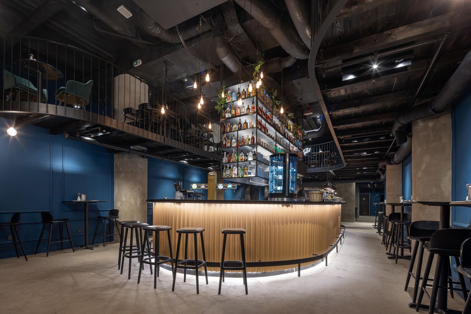 - Stylový interiér s atmosférou moderního lounge baru