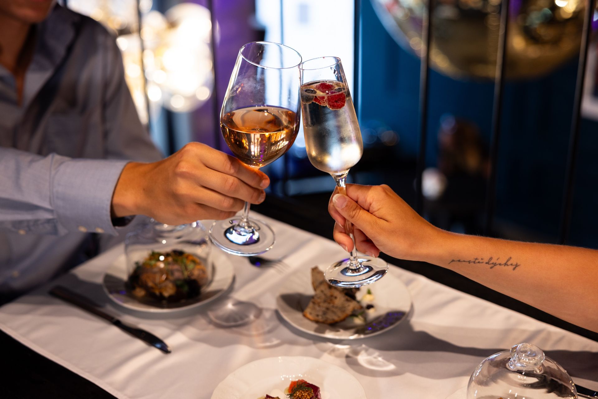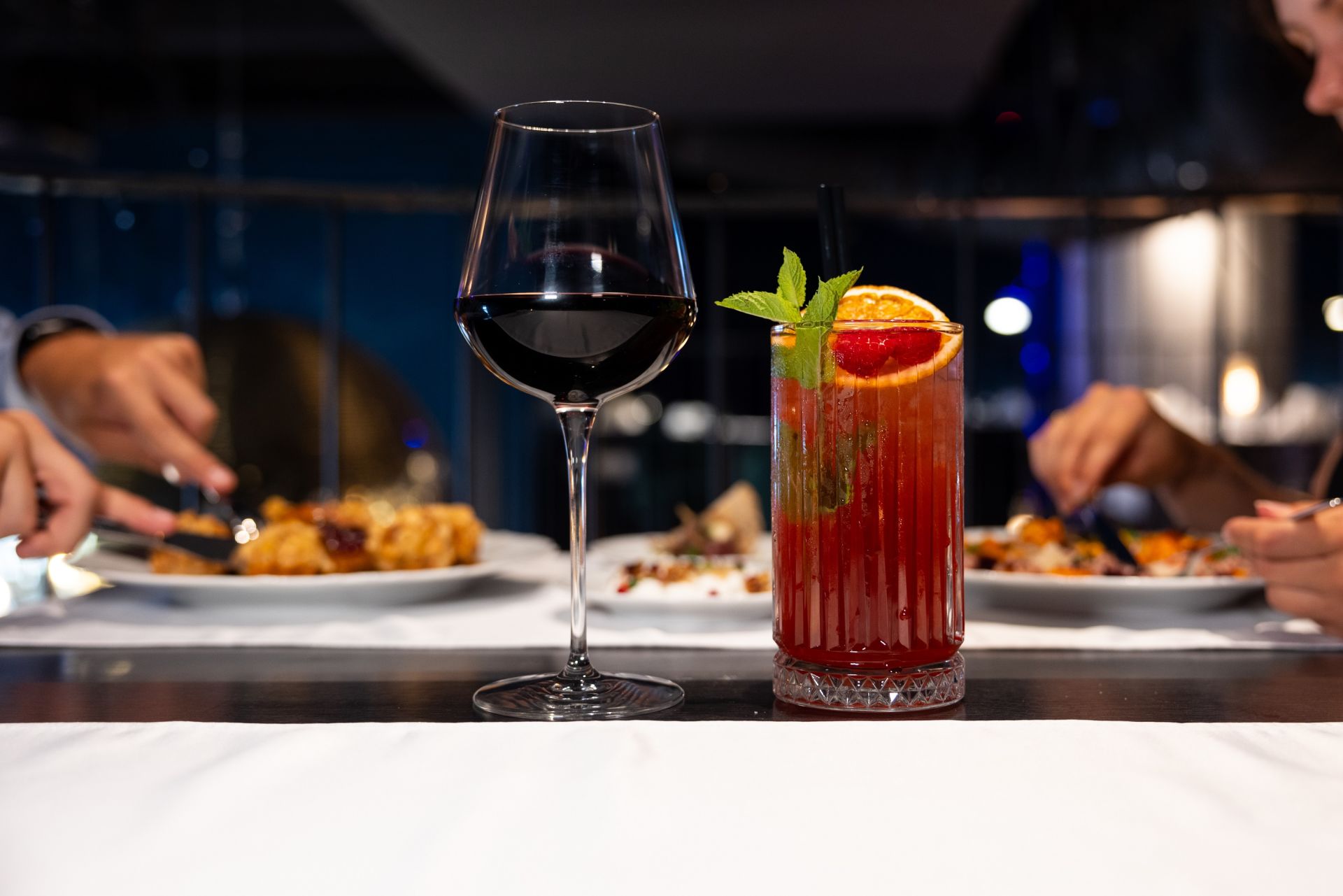 - Bohatá nabídka nápojů – prémiové koktejly, vína i nealko varianty